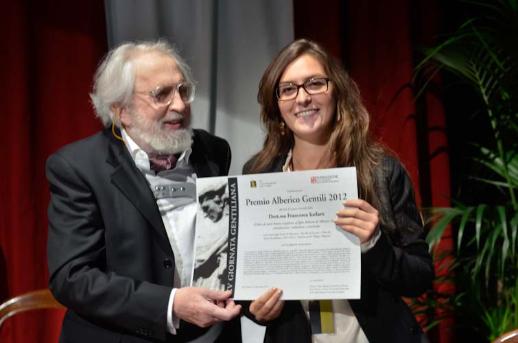 La tesi della dott.ssa Iurlaro è un lavoro di notevole impegno, condotto con intelligenza e apprezzabile accuratezza filologica e metodologica e si segnala come meritevole del premio, anche per la qualità della scrittura: esso risponde pienamente all’intento di “celebrazione della memoria” e di “divulgazione degli studi” su Alberico Gentili, e, di conseguenza, è meritevole della assegnazione del premio.
