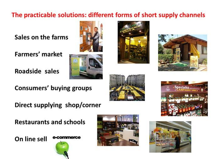 A solution to help bridge the gap between the price the producer receives and the price paid by consumers is to improve direct relations between consumers and producers, shortening the marketing channels to consumers and emphasizing the concept of local food.