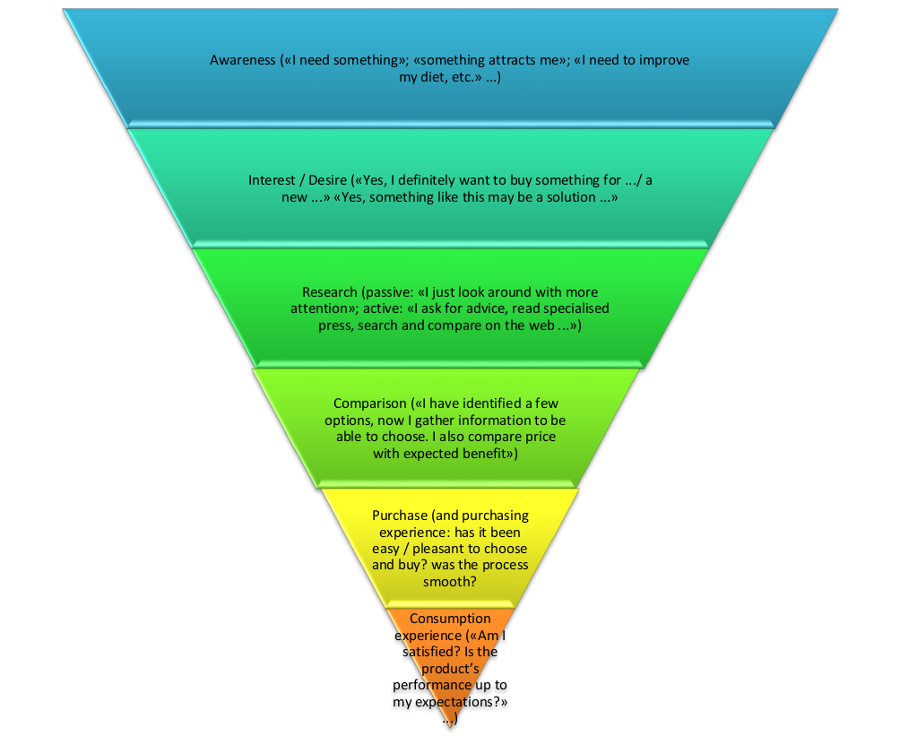 a) Organise a meeting (2 hrs) with 8-10 consumers. To tempt them to participate, offer them a gadget, a voucher, etc.. Ask them to discuss the theme you are interested in. Start with the present situation («are you completely satisfied with ...?) and then go on with potentialities («what would you say if I offered you ...». Pay attention to let everyone speak, restrain exuberant participants a bit in order to leave space for the shy ones. b) - c) The same questions of focus groups can be asked to single consumers, also with the aim of exploring their degree of satisfaction and desires in detail. In this case, you have to pay particular attention when writing the questionnaire: be careful not to suggest answers. It is difficult, but you will receive a greater benefit from your work if you fully accept customers’ points of view, without trying to influence them, even if what they say shows their ignorance on the matter and seems to favour your competitor. d) a), b) and c) can be used to ask consumers to evaluate a current product, to see if they find something missing, and show a need for something different e) Store checks are a must for businessmen. The farmer who avoids doing store checks because he is too busy acts exactly as the man who laboriously waters with a broken bucket because he has no time to fix it (being too busy watering). Stores located in the target market have to be visited regularly, so that not only the current situation can be monitored, but also changes to it. Retailers have a knack to perceive market trends, so if a certain product is strongly present and promoted, there may be something in it. And what about products which always have cut-price promotions, as if the store wants to get rid of them, to make space for something else? Packaging has to be studied, its colours, its messages, possible innovations. Keen attention must be given to our competitor’s products. How are they positioned? The same goes for competitors who have their own stall. What do they offer, what do they NOT offer that should be offered instead? Can you take advantage of that? You can also add a bit of the so-called «mystery shopping»: buy something, ask questions, and pay attention to the way the seller presents the product: which features does he/she enhance? |
