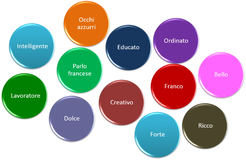 Immaginate di dover promuovere… voi stessi. Supponete di avere tutte le caratteristiche elencate nell’immagine qui sopra. Per che cosa vi state promuovendo? Un nuovo lavoro? Un fidanzato / fidanzata? Dove vi promuovete? In Svezia, in Spagna? Qualunque sia la situazione, generereste confusione, e forse sembrereste un po’ presuntuosi, se elencaste tutte le meravigliose caratteristiche citate nell’immagine. Sarebbe molto meglio se sceglieste l’aspetto che vi aiuterà al meglio in ogni situazione. Ad esempio, gli occhi azzurri potrebbero essere utili per trovare un fidanzato / fidanzata in Spagna, ma non in Svezia (dove molte persone hanno gli occhi azzurri), la vostra forza fisica sarebbe apprezzata per un lavoro manuale, ma sarebbe insignificante per un lavoro d’ufficio. Allo stesso modo, essere creativi potrebbe non essere così importante quando si deve timbrare buste tutto il giorno, essere educati è cruciale se si cerca lavoro in una reception, e ci sono persone che sanno apprezzare, in un potenziale partner, la dolcezza più della ricchezza.