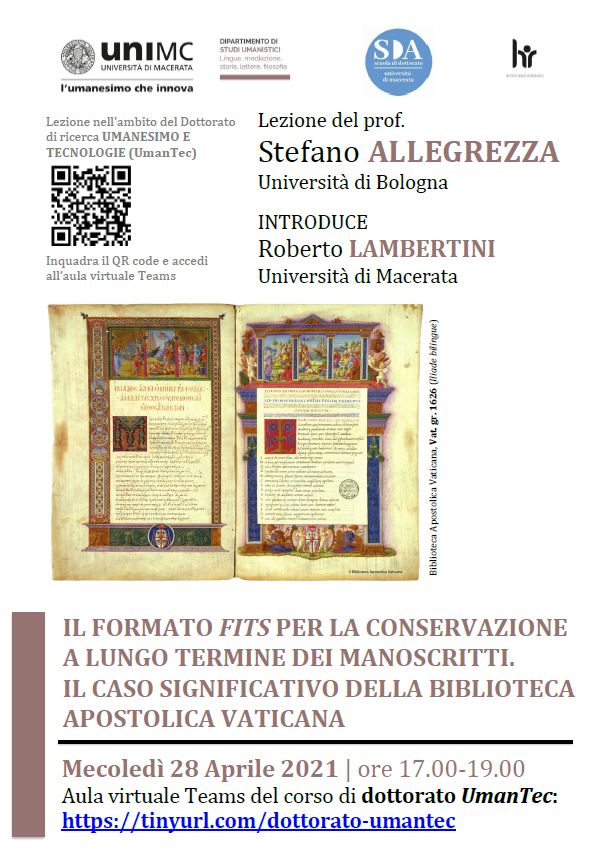 1 marzo 2022 / ore 16.00-18.00 Prof. Simone CALZOLAIO | Università di MacerataIntroduce:Prof.ssa Raffaella MERLINI | Università di MacerataAula virtuale del dottorato UmanTec: https://tinyurl.com/dottorato-umantec |