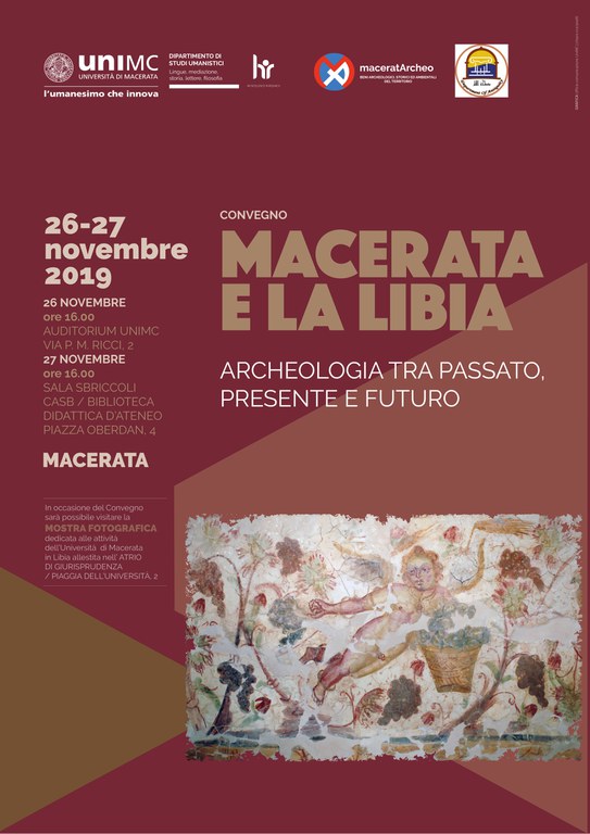In occasione del Convegno sarà possibile visitare la MOSTRA FOTOGRAFICA dedicata alle attività dell’Università di Macerata in Libia allestita nell’ ATRIO DI GIURISPRUDENZA / PIAGGIA DELL’UNIVERSITÀ, 2