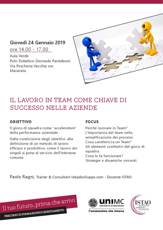 Il lavoro in team come chiave di successo nelle aziendePercorso di formazione e orientamento Unimc-Istao | 4° INCONTROhttps://www.unimc.it/it/unimc-comunica/events/2019/percorso-unimc-istao-il-lavoro-in-team-come-chiave-di-successo-nelle-aziendehttps://www.unimc.it/it/unimc-comunica/events/2019/percorso-unimc-istao-il-lavoro-in-team-come-chiave-di-successo-nelle-aziende/@@download/image/p01-001 (1).jpg