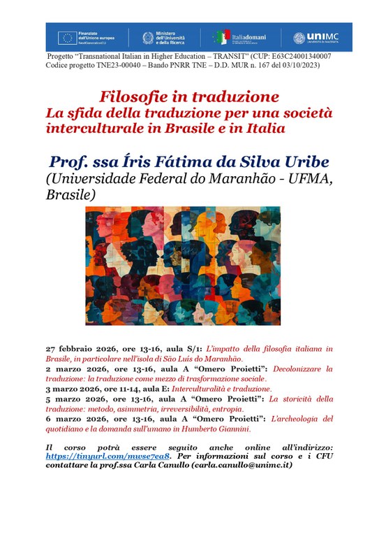 2026-03-06Con la Prof. ssa Íris Fátima da Silva Uribe dell'Universidade Federal do Maranhão - UFMA, Brasilehttps://www.unimc.it/it/unimc-comunica/events/2026/filosofie-in-traduzione-la-sfida-della-traduzione-per-una-societa-interculturale-in-brasile-e-in-italia/2026-03-06https://www.unimc.it/@@site-logo/logo_unimc_dal1290.png