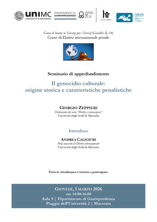 Il genocidio culturale: origine storica e caratteristiche penalisticheSeminario di approfondimentohttps://www.unimc.it/it/unimc-comunica/events/2026/il-genocidio-culturale-origine-storica-e-caratteristiche-penalistichehttps://www.unimc.it/@@site-logo/logo_unimc_dal1290.png