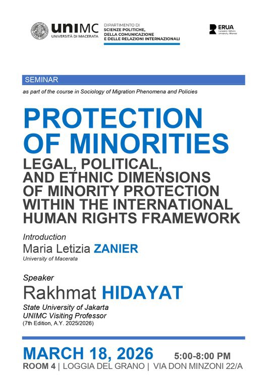 Protection of minorities: legal, political, and ethnic dimensions of minority protection within the international human rights frameworkhttps://www.unimc.it/it/unimc-comunica/events/2026/protection-of-minorities-legal-political-and-ethnic-dimensions-of-minority-protection-within-the-international-human-rights-frameworkhttps://www.unimc.it/@@site-logo/logo_unimc_dal1290.png