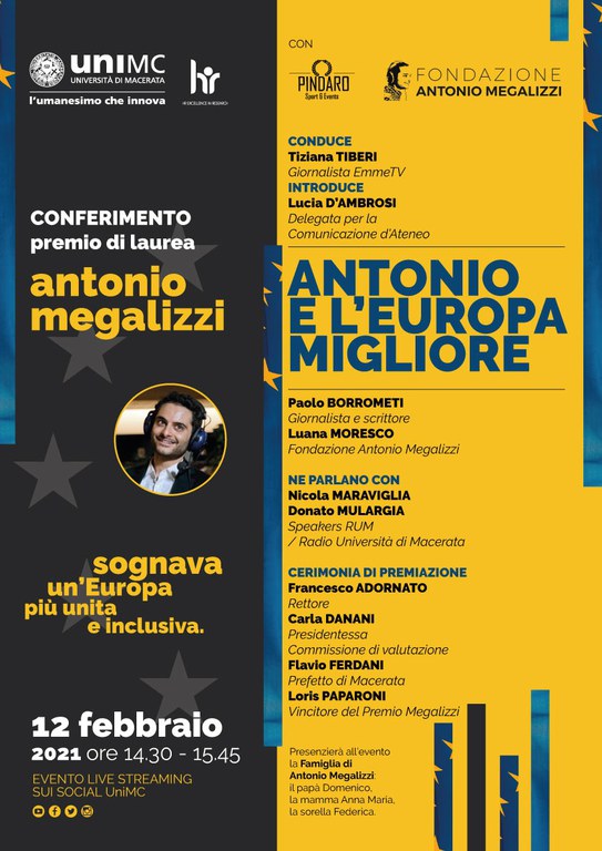Antonio e l'Europa miglioreConferimento premio di laurea ANTONIO MEGALIZZIhttps://www.unimc.it/it/unimc-comunica/events/eventi-2021/antonio-e-leuropa-migliorehttps://www.unimc.it/it/unimc-comunica/events/eventi-2021/antonio-e-leuropa-migliore/@@download/image/Bannerone_PremioMegalizzi-1.jpg