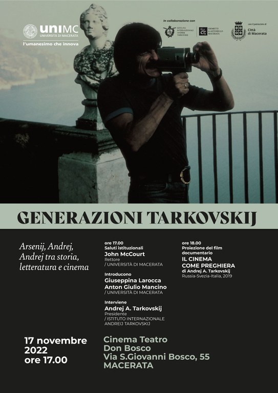 Generazioni TarkovskijArsen, Andrej, Andrej tra storia, letteratura e cinemahttps://www.unimc.it/it/unimc-comunica/events/eventi-2022/generazioni-tarkovskijhttps://www.unimc.it/it/unimc-comunica/events/eventi-2022/generazioni-tarkovskij/@@download/image/Tarkovskij.jpg