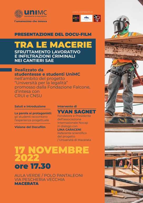 Presentazione del docu-film TRA LE MACERIESFRUTTAMENTO LAVORATIVO E INFILTRAZIONI CRIMINALI NEI CANTIERI SAEhttps://www.unimc.it/it/unimc-comunica/events/eventi-2022/presentazione-del-docu-film-tra-le-maceriehttps://www.unimc.it/it/unimc-comunica/events/eventi-2022/presentazione-del-docu-film-tra-le-macerie/@@download/image/Bannerone_TraLeMacerie copia.jpg